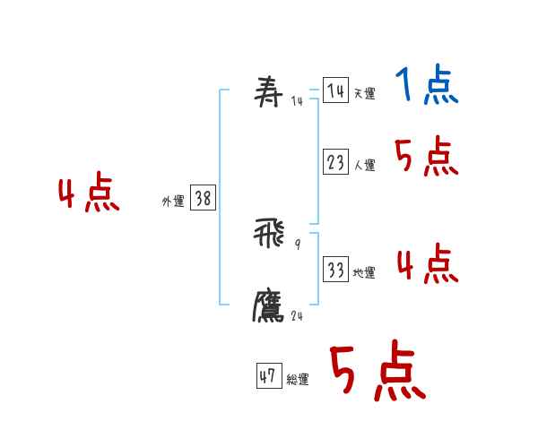 寿飛鷹さんの画数の鑑定結果