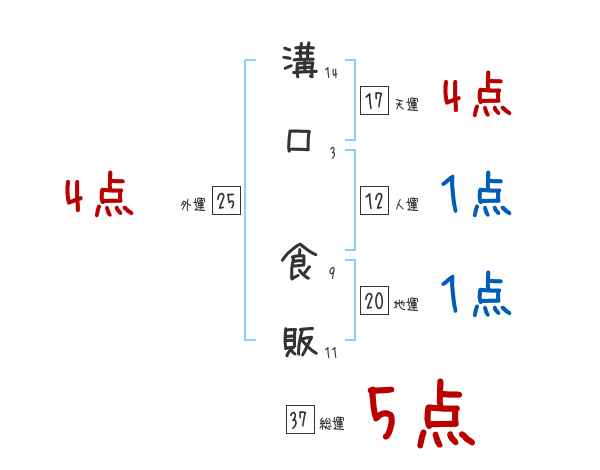 天運![]() | 溝口食販さんの天運は17画の4つ星!積極的な行動力。地位を気づき財産を手に入れる。純粋な心と直感力。 家系が持つ宿命的な運勢を表します。祖先から受け継いだ苗字ですので自分の力が及びません。家柄を象徴します。 |