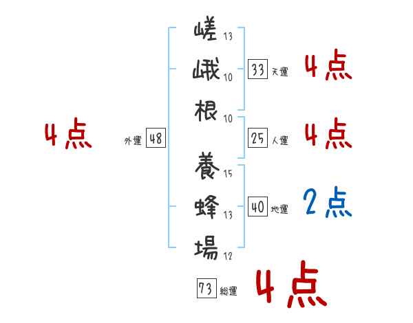 嵯峨根養蜂場さんの画数の鑑定結果
