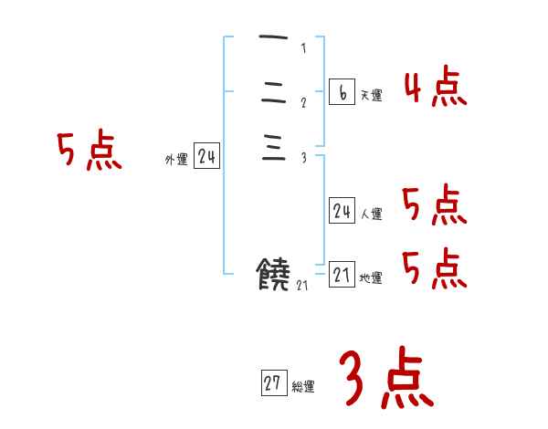 一二三饒さんの画数の鑑定結果