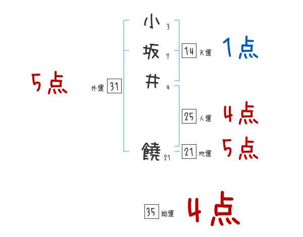天運![]() | 小坂井饒さんの天運は14画の1つ星!人に対して優しいがストレスを溜め込みがち。人間関係のトラブルを避けるよう気をつけましょう。 家系が持つ宿命的な運勢を表します。祖先から受け継いだ苗字ですので自分の力が及びません。家柄を象徴します。 |