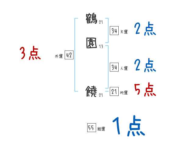 鶴園饒さんの総運は55画の1つ星