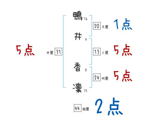 人運![]() | 鴨井香凜さんの人運は13画の5つ星!才能に恵まれ人気がある。名声を手に入れる。円満な人生。 性格や才能などを表す2番目に重要な運勢です。人間関係や協調性、社会的な成功に影響します。主に20歳から50歳ぐらいまでの中年期の運勢を表します。 |