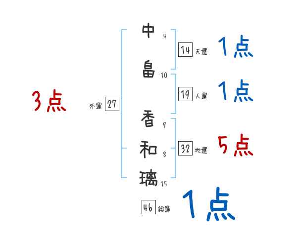 中畠香和璃さんの外運は27画の3つ星