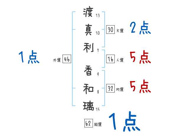 天運![]() | 渡真利香和璃さんの天運は30画の2つ星!浮き沈みの激しさに注意しましょう。 家系が持つ宿命的な運勢を表します。祖先から受け継いだ苗字ですので自分の力が及びません。家柄を象徴します。 |