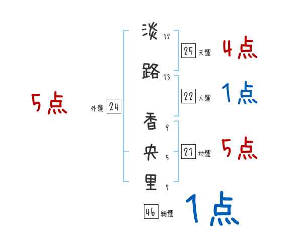 淡路香央里さんの画数の鑑定結果