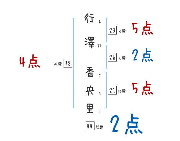 天運![]() | 行澤香央里さんの天運は23画の5つ星!想像力に優れ活力がある。一代で成功し名誉を手に入れる。 家系が持つ宿命的な運勢を表します。祖先から受け継いだ苗字ですので自分の力が及びません。家柄を象徴します。 |