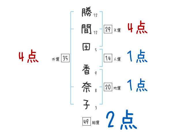 勝間田香奈子さんの画数の鑑定結果