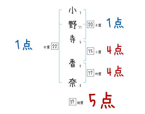 小野寺香奈さんの画数の鑑定結果