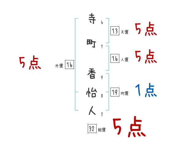 寺町香怡人さんの外運は16画の5つ星