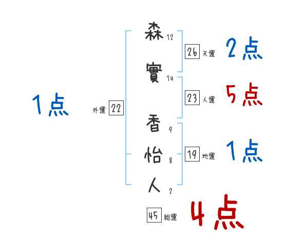 天運![]() | 森實香怡人さんの天運は26画の2つ星!波瀾万丈かも。信頼できる人を大事にしましょう。 家系が持つ宿命的な運勢を表します。祖先から受け継いだ苗字ですので自分の力が及びません。家柄を象徴します。 |