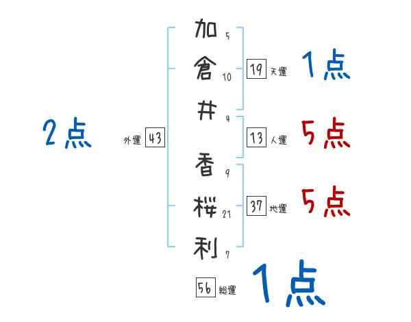 加倉井香桜利さんの画数の鑑定結果