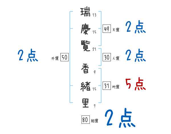 瑞慶覧香緒里さんの画数の鑑定結果