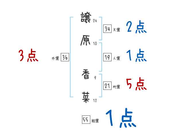 譲原香菜さんの画数の鑑定結果