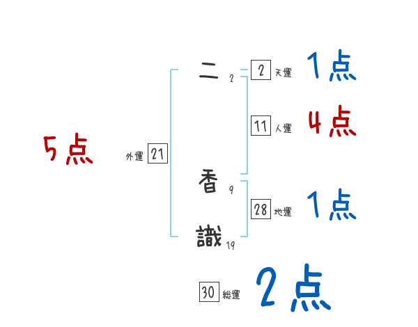 外運![]() | 二香識さんの外運は21画の5つ星!統率力がある。独立し成功する。名誉を手に入れる。 生活面を象徴する運勢です。外部から受ける影響力を表し、結婚運、家庭運や職場、環境への順応性を表します。 |