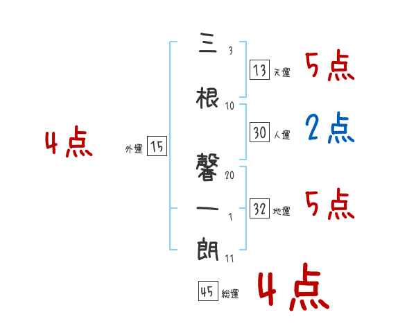 地運![]() | 三根馨一朗さんの地運は32画の5つ星!柔軟性があり成功する。チャンスが多く金運が良い。 個性を表す基礎的な運勢です。性格形成や対人関係、行動力など家庭環境に影響されます。主に誕生してから20歳くらいまでの若年期の運勢を表します。 |