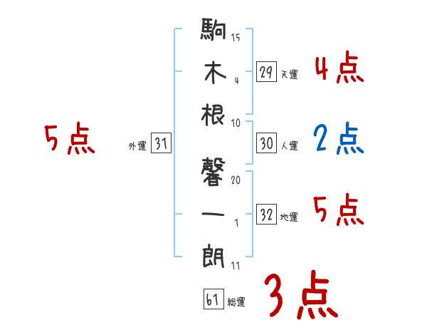駒木根馨一朗さんの画数の鑑定結果