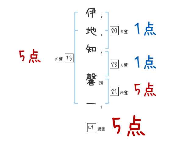 伊地知馨一さんの画数の鑑定結果
