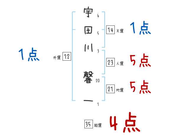 宇田川馨一さんの画数の鑑定結果