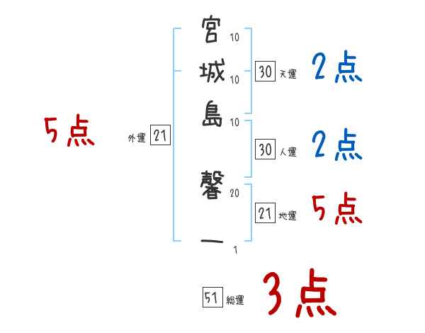 宮城島馨一さんの画数の鑑定結果