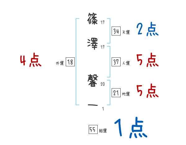 天運![]() | 篠澤馨一さんの天運は34画の2つ星!独創性に優れるが、自尊心が強く災難に注意しましょう。 家系が持つ宿命的な運勢を表します。祖先から受け継いだ苗字ですので自分の力が及びません。家柄を象徴します。 |