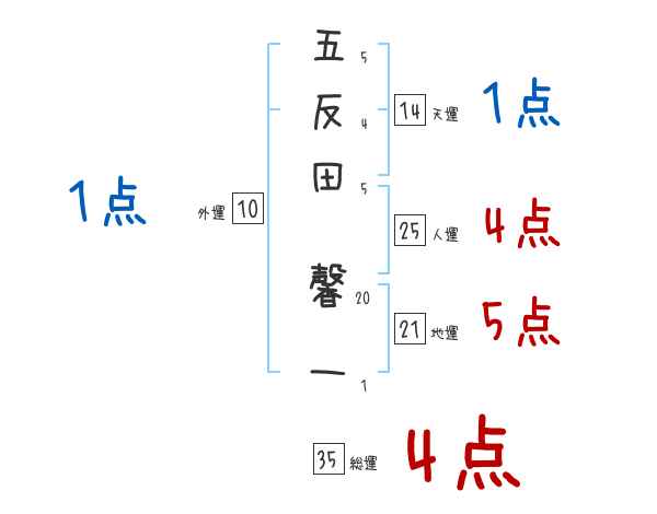 五反田馨一さんの画数の鑑定結果