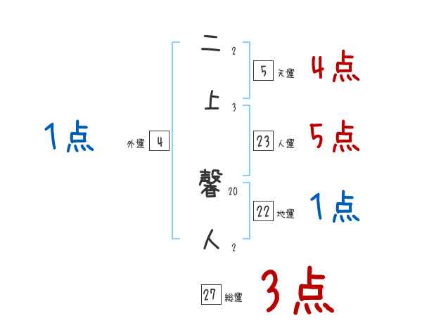 二上馨人さんの画数の鑑定結果