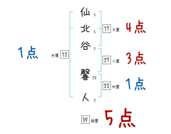 天運![]() | 仙北谷馨人さんの天運は17画の4つ星!積極的な行動力。地位を気づき財産を手に入れる。純粋な心と直感力。 家系が持つ宿命的な運勢を表します。祖先から受け継いだ苗字ですので自分の力が及びません。家柄を象徴します。 |