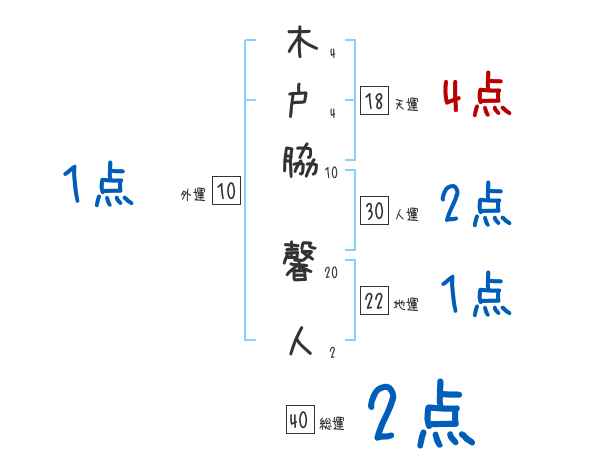 天運![]() | 木戸脇馨人さんの天運は18画の4つ星!情熱的で剛気。忍耐力があり信頼される。 家系が持つ宿命的な運勢を表します。祖先から受け継いだ苗字ですので自分の力が及びません。家柄を象徴します。 |