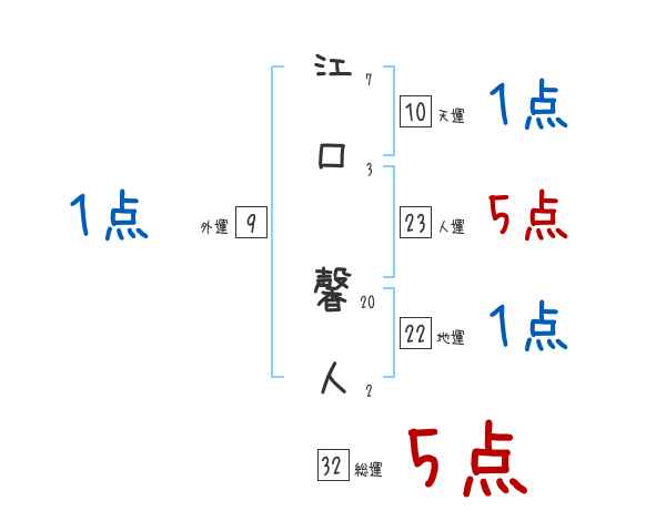 江口馨人さんの画数の鑑定結果