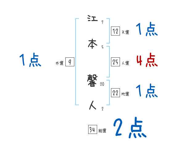 江本馨人さんの画数の鑑定結果