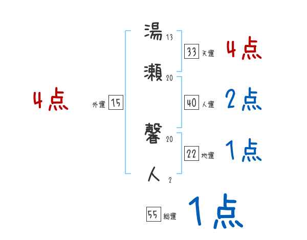 湯瀬馨人さんの画数の鑑定結果
