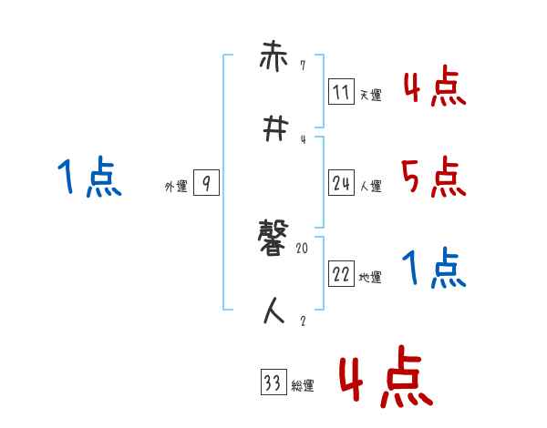 赤井馨人さんの画数の鑑定結果