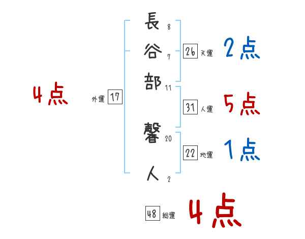 長谷部馨人さんの画数の鑑定結果
