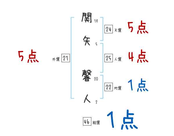天運![]() | 関矢馨人さんの天運は24画の5つ星!家庭運が良く順調な人生。金運にも恵まれる。 家系が持つ宿命的な運勢を表します。祖先から受け継いだ苗字ですので自分の力が及びません。家柄を象徴します。 |