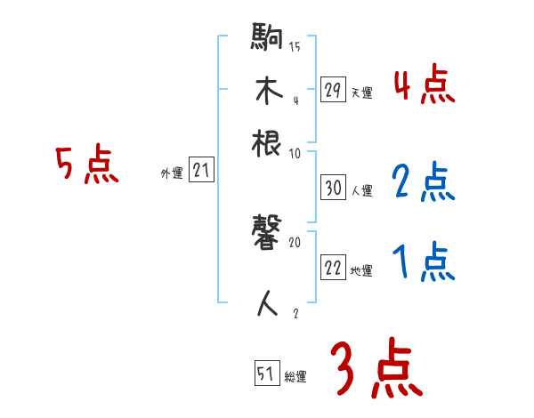 駒木根馨人さんの画数の鑑定結果