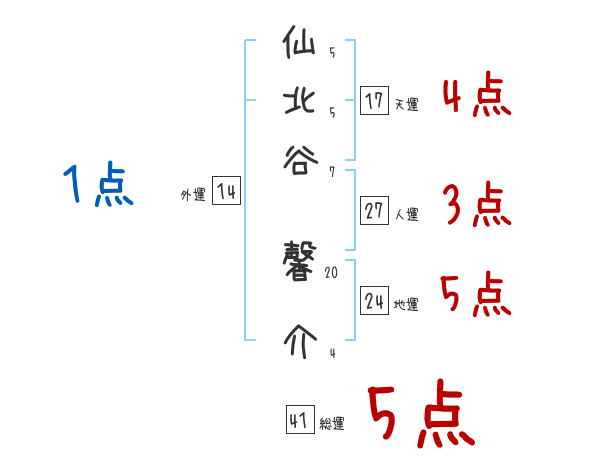 仙北谷馨介さんの画数の鑑定結果