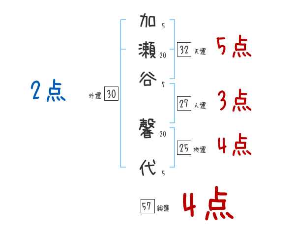 加瀬谷馨代さんの画数の鑑定結果