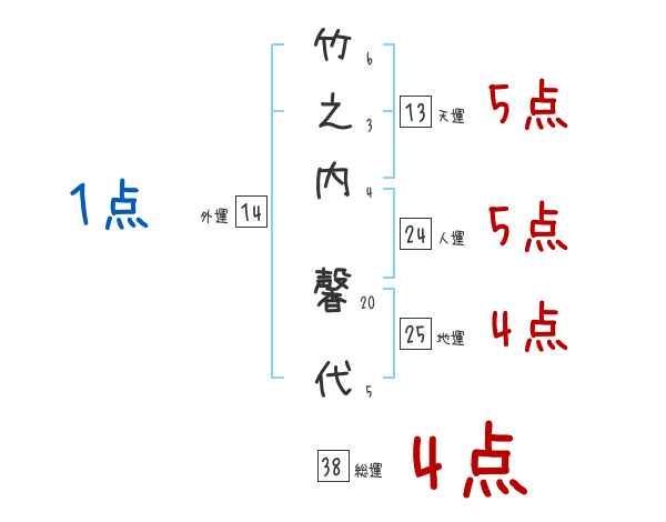 外運![]() | 竹之内馨代さんの外運は14画の1つ星!人に対して優しいがストレスを溜め込みがち。人間関係のトラブルを避けるよう気をつけましょう。 生活面を象徴する運勢です。外部から受ける影響力を表し、結婚運、家庭運や職場、環境への順応性を表します。 |