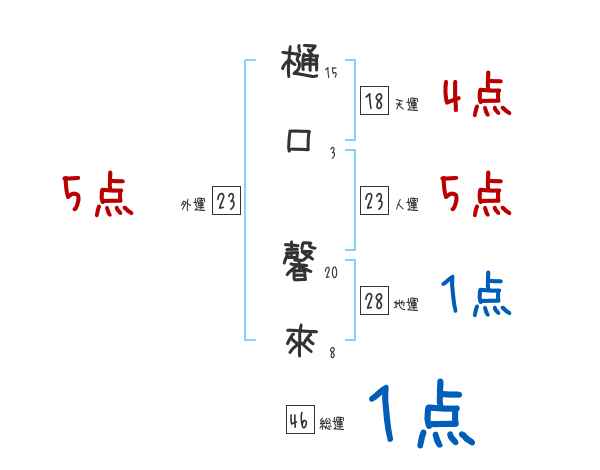 人運![]() | 樋口馨來さんの人運は23画の5つ星!想像力に優れ活力がある。一代で成功し名誉を手に入れる。 性格や才能などを表す2番目に重要な運勢です。人間関係や協調性、社会的な成功に影響します。主に20歳から50歳ぐらいまでの中年期の運勢を表します。 |