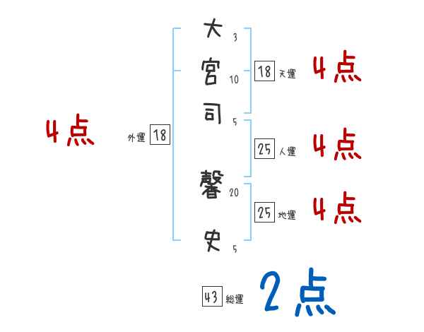 大宮司馨史さんの画数の鑑定結果