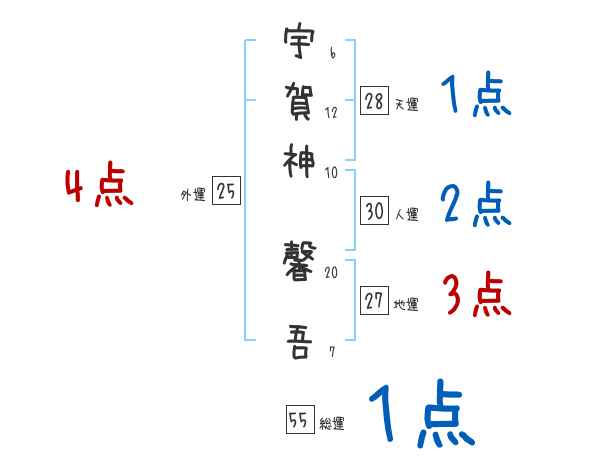 宇賀神馨吾さんの画数の鑑定結果