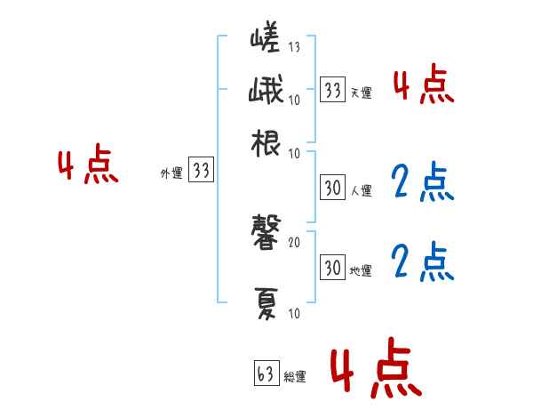 嵯峨根馨夏さんの画数の鑑定結果
