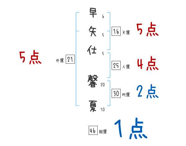 天運![]() | 早矢仕馨夏さんの天運は16画の5つ星!人望が厚く大きく発展する。逆転成功が見える。 家系が持つ宿命的な運勢を表します。祖先から受け継いだ苗字ですので自分の力が及びません。家柄を象徴します。 |