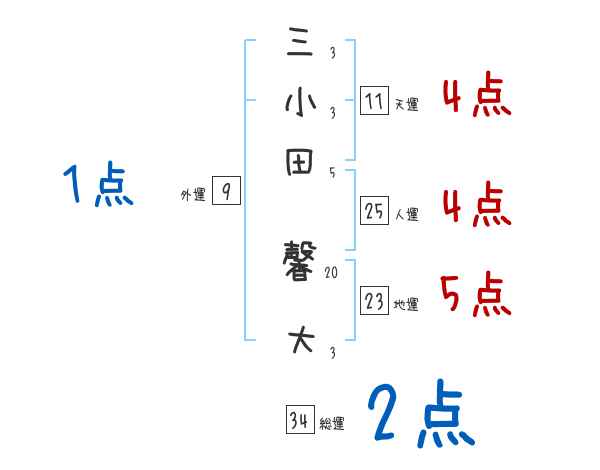 三小田馨大さんの画数の鑑定結果