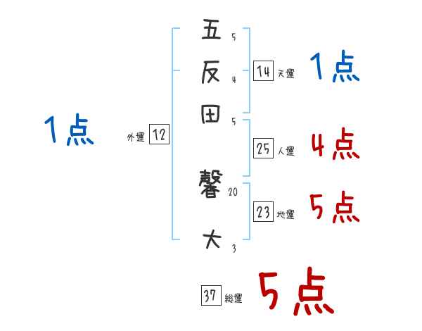 天運![]() | 五反田馨大さんの天運は14画の1つ星!人に対して優しいがストレスを溜め込みがち。人間関係のトラブルを避けるよう気をつけましょう。 家系が持つ宿命的な運勢を表します。祖先から受け継いだ苗字ですので自分の力が及びません。家柄を象徴します。 |
