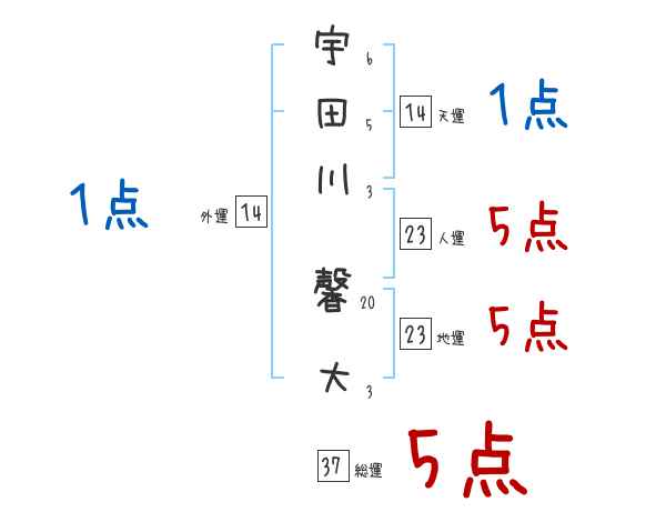 宇田川馨大さんの画数の鑑定結果