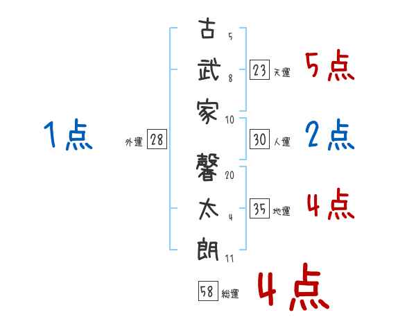 古武家馨太朗さんの画数の鑑定結果