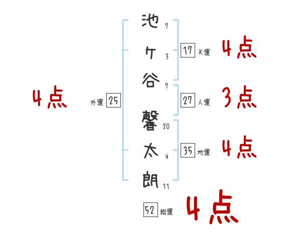 池ヶ谷馨太朗さんの画数の鑑定結果