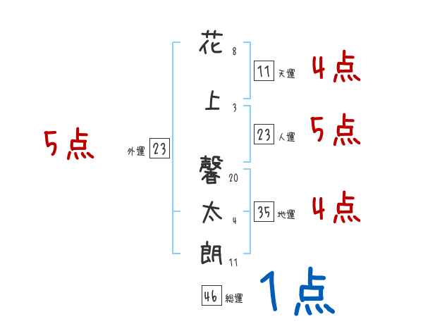 花上馨太朗さんの画数の鑑定結果
